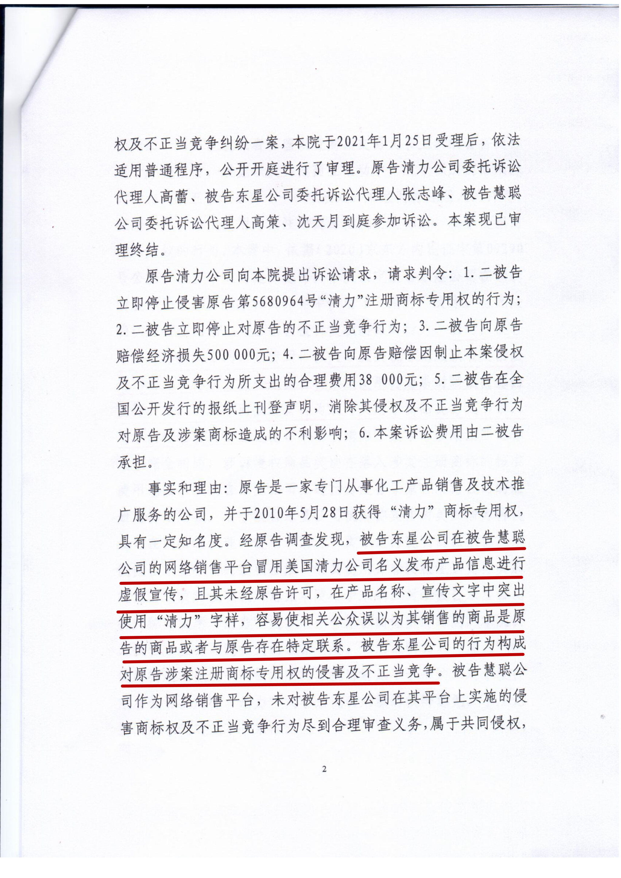 2.清力产品已在国内推广使用将近20年,该山东东星贸易公司于2015年在山东邹平县成立,曾多次在网站宣传、产品资料、海关单,涉水批件、检测报告等内容弄虚作假,在品牌上恶意使用清力、美国清力等字样,欺诈消费者,2022年经过北京法院审判,已对山东假冒清力商标侵权案件司法判决处理。